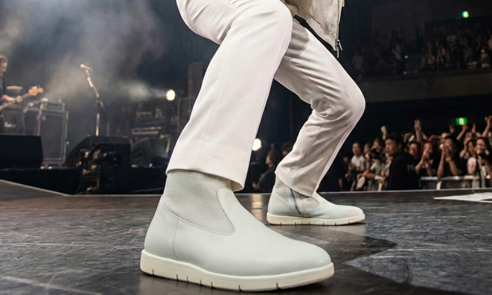 WANGETSU《彎月》のアッパーには、時を重ねるほどに馴染む上質な牛革を贅沢に使用。一方で足首周りにはテクニカルなメッシュ素材を配し、重厚なブーツの佇まいにスニーカーの軽快さを大胆に融合させました。カラーは、本質を突き詰めた「漆黒(Black)」と、洗練を極めた「純白(White)」の2色展開。 相反する要素が共存するデザインは、都市のコンクリートにも、創造的なステージにも、完璧に調和します。