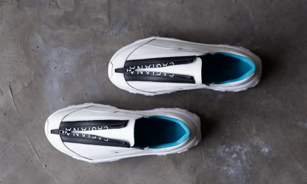 足に沿う未来的ソールと機能美を追求したファスナー設計が快適な移動を実現