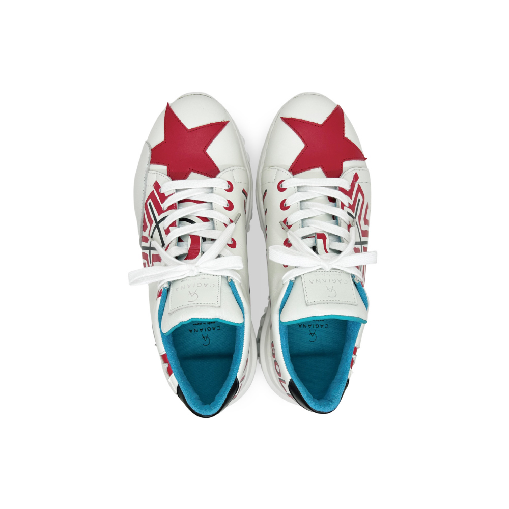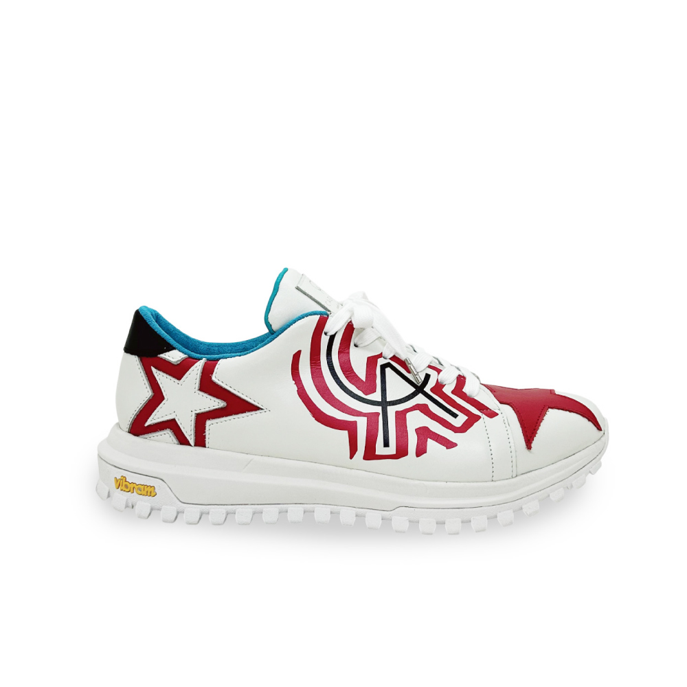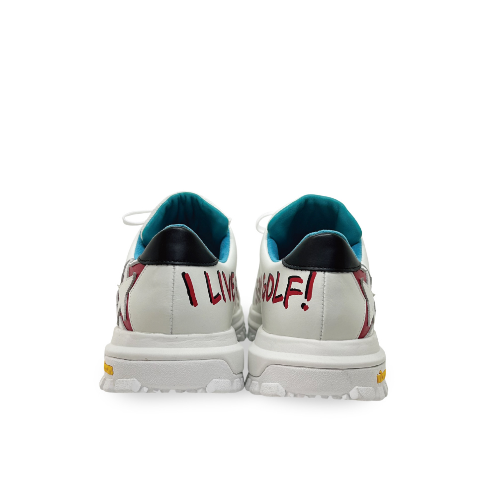 スターモチーフとカジーナアイコンのCAで構成したシューレースタイプのローカットスニーカー。クラシカルでクリーンなフォルム。内側にはI LIVE FOR GOLFのメッセージ。Vibram MEGAGRIPソールが、あらゆるライで卓越したグリップ力を発揮し、優雅さと機能美が融合した、至高のプレーを約束する一足です。
