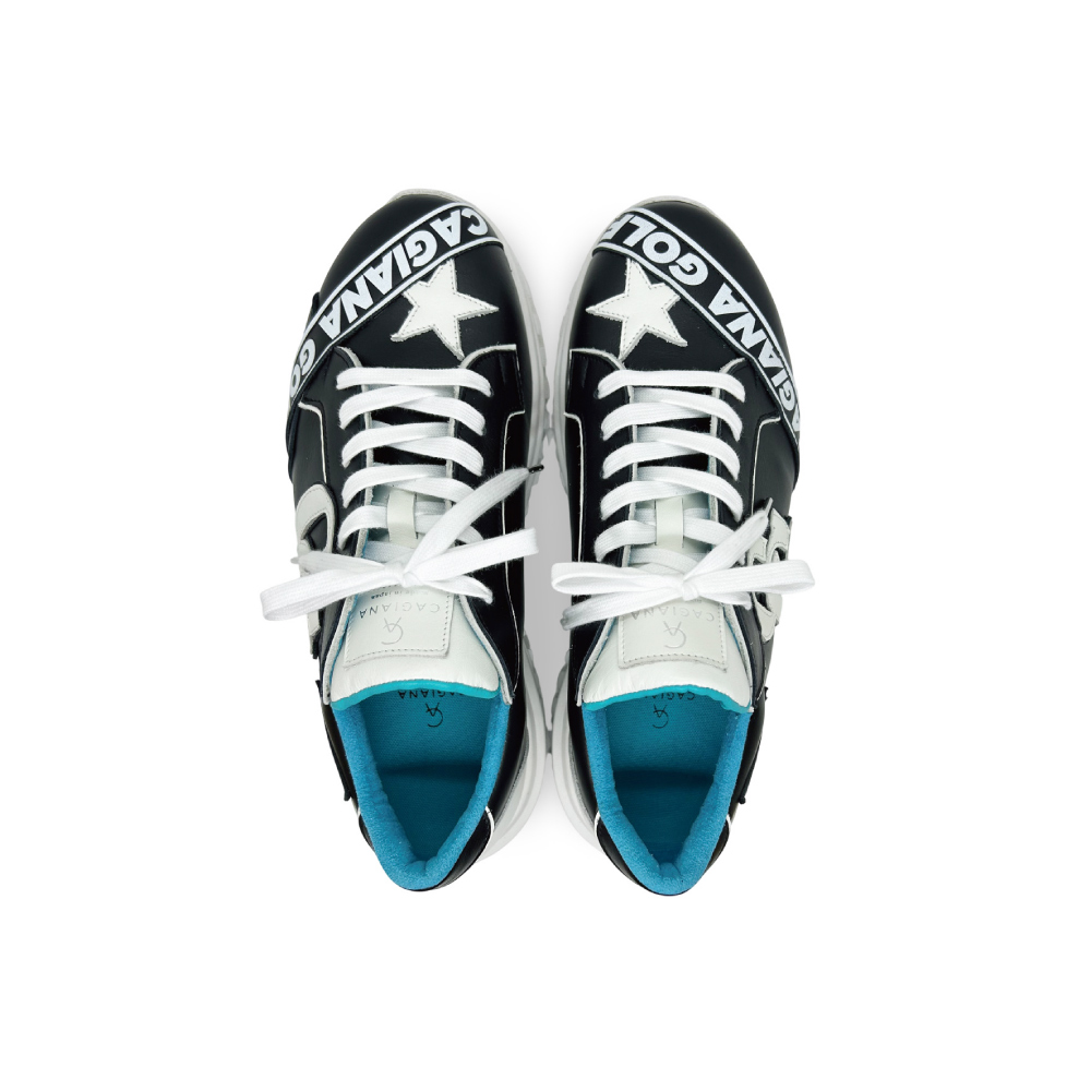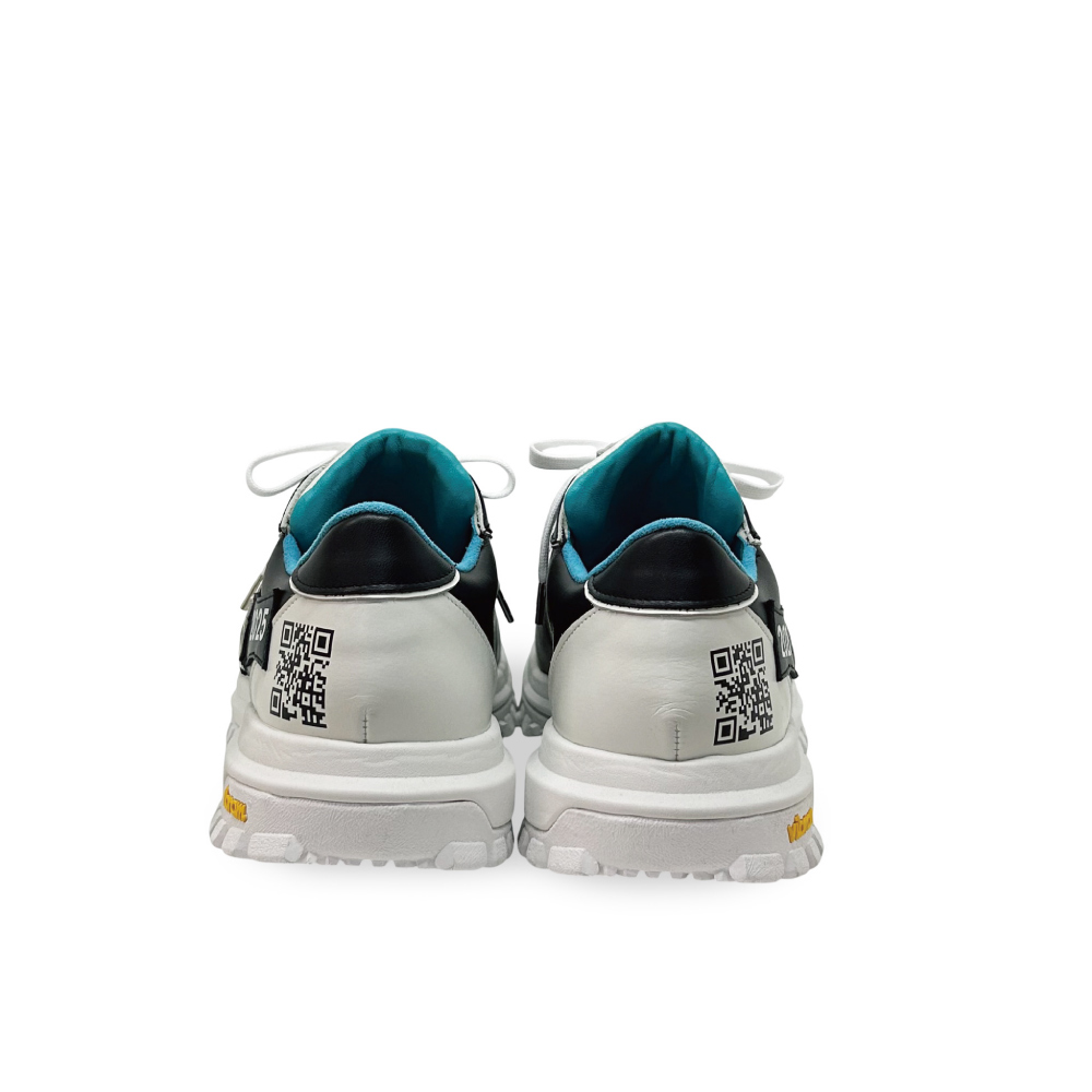 スターモチーフやロゴワッペンをステッカーのように貼り付けたデザインのローカットゴルフシューズ。踵にプリントされたQRコードからはECサイトにアクセスできるという遊び心も。Vibram MEGAGRIPソールが、あらゆるライで卓越したグリップ力を発揮し、優雅さと機能美が融合した、至高のプレーを約束する一足です。