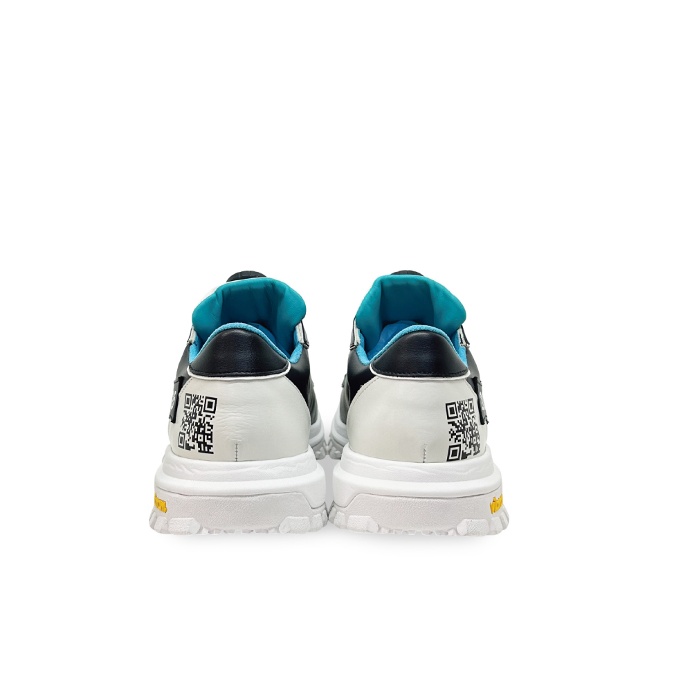 スターモチーフやロゴワッペンをステッカーのように貼り付けたデザインのローカットゴルフシューズ。踵にプリントされたQRコードからはECサイトにアクセスできるという遊び心も。Vibram MEGAGRIPソールが、あらゆるライで卓越したグリップ力を発揮し、優雅さと機能美が融合した、至高のプレーを約束する一足です。