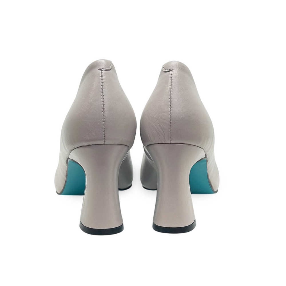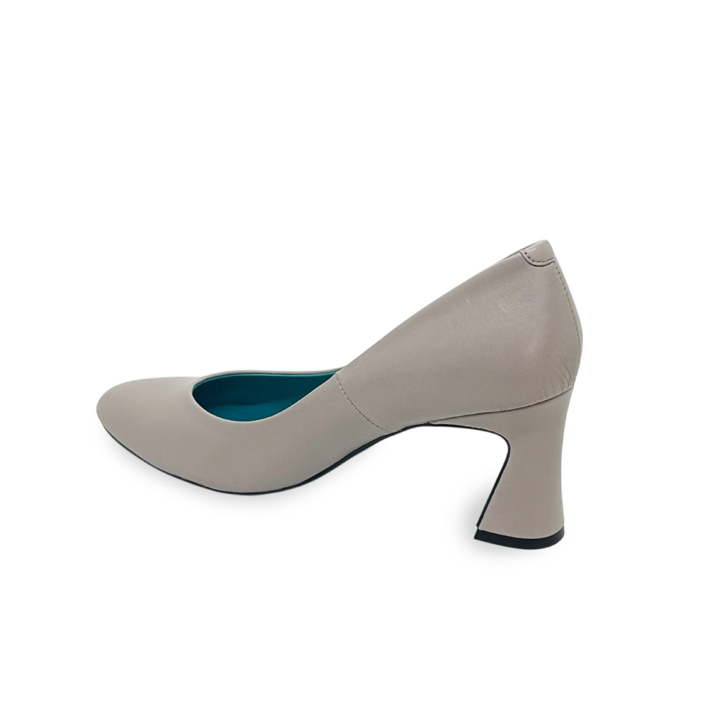 研ぎ澄まされたフォルムと、無駄のない表情。しなやかなカーフレザーの質感と、足を美しく見せるラインそのものを主役にした一足です。内側に配したターコイズブルーは静かなアクセント。装飾に頼らず、大人の女性の足元に洗練された佇まいと気品を添えます。