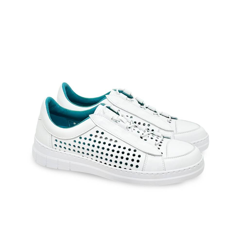 パンチングという技法が、堅牢な革に「呼吸」という新たな命を吹き込みました。無数の孔(あな)が描く緻密なリズムと、結ぶ手間を脱ぎ捨てたゴムシューレースの機能美。スリッポンのごとく軽やかな着脱は、多忙な日常に「究極の余白」という贅沢をもたらします。