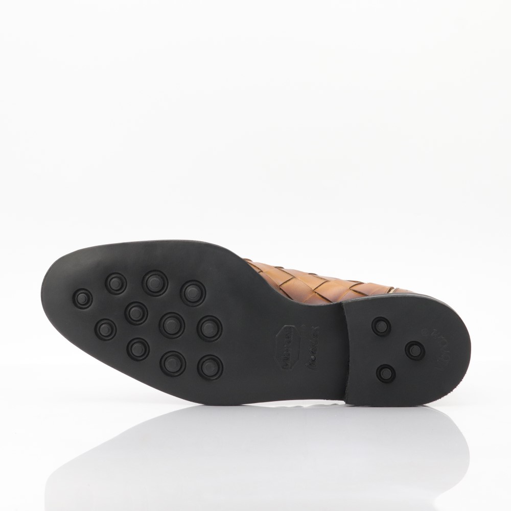 上質な革で編み込まれたイントレチャートに、パティーヌで仕上げた鮮やかなグラデュエーションの特別感が印象的。包みこまれるような爽快な履き心地が秀逸の品です。