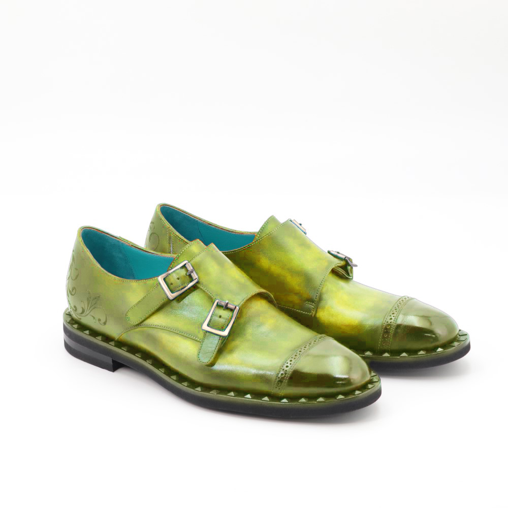 ・ダブルのモンクストラップタイプのパンチドキャップトゥ