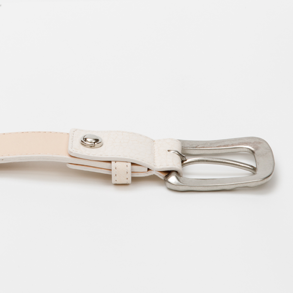 バックルのピンで留めるための穴が開いておらず、チェーンの隙間にピンを指すことで好きな位置で調整いただくことができます。