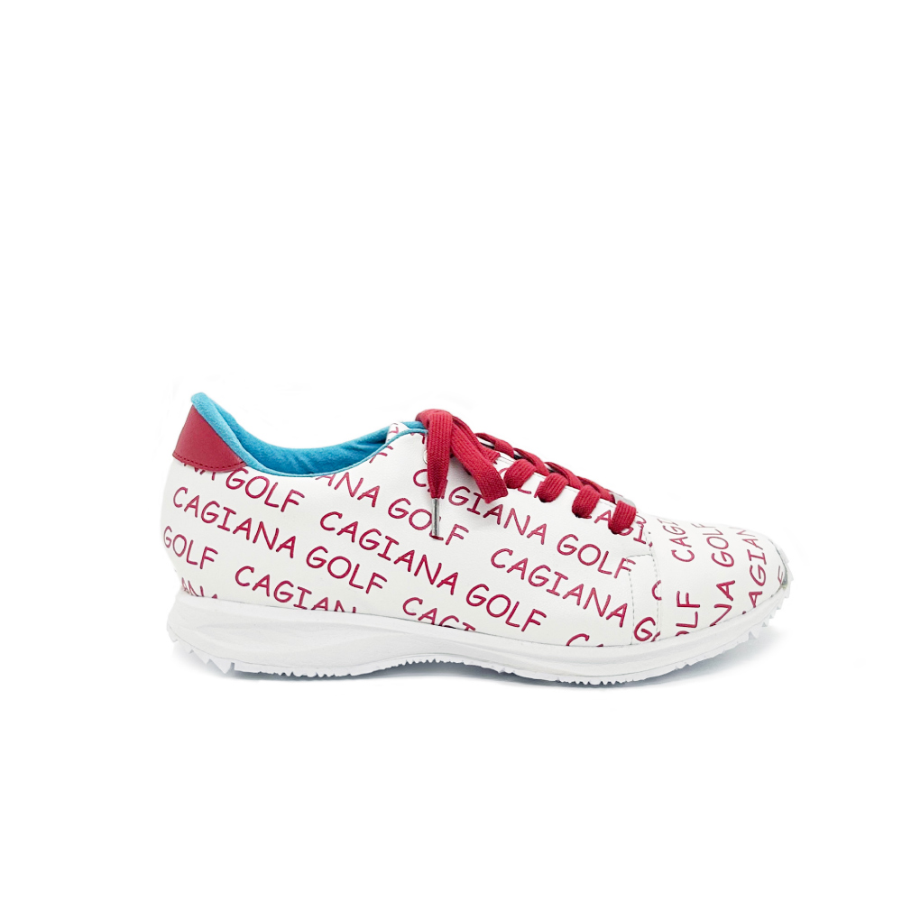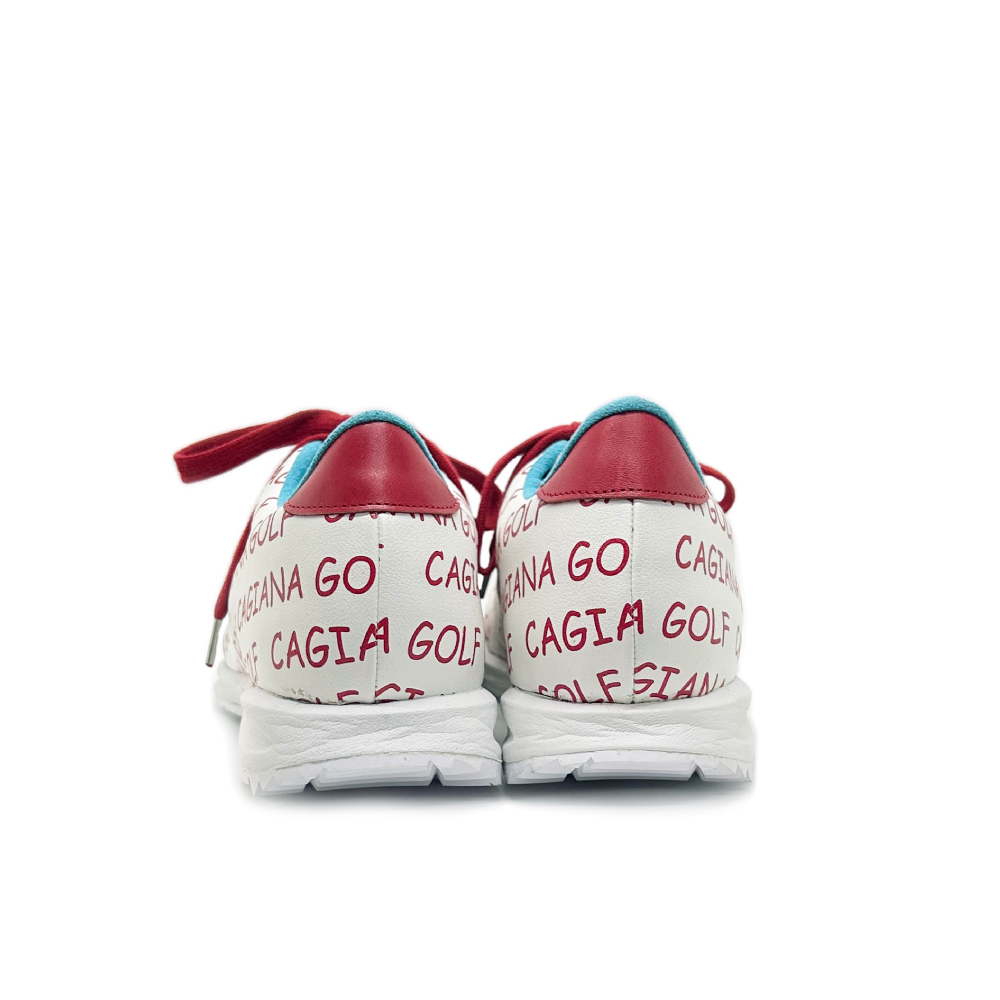 CAGIANA GOLFロゴを全面に配したデザインのローカットゴルフシューズ。シューレース部分につけたCAGIANAロゴが刻印された金属プレートがポイントになっています。着回ししやすいカラーリングで、履く人の個性を引き出しつつ、スタイリングを格上げする一足です。