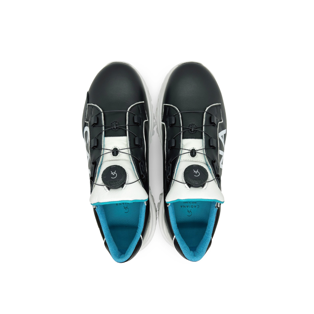 CAGIANAロゴを全面に配したシンプルで力強いデザインのローカットゴルフシューズ。着回ししやすいカラーリングで、履く人の個性を引き出しつつ、スタイリングを格上げする一足です。Vibram MEGAGRIPソールが、あらゆるライで卓越したグリップ力を発揮し、優雅さと機能美が融合した、至高のプレーを約束する一足です。