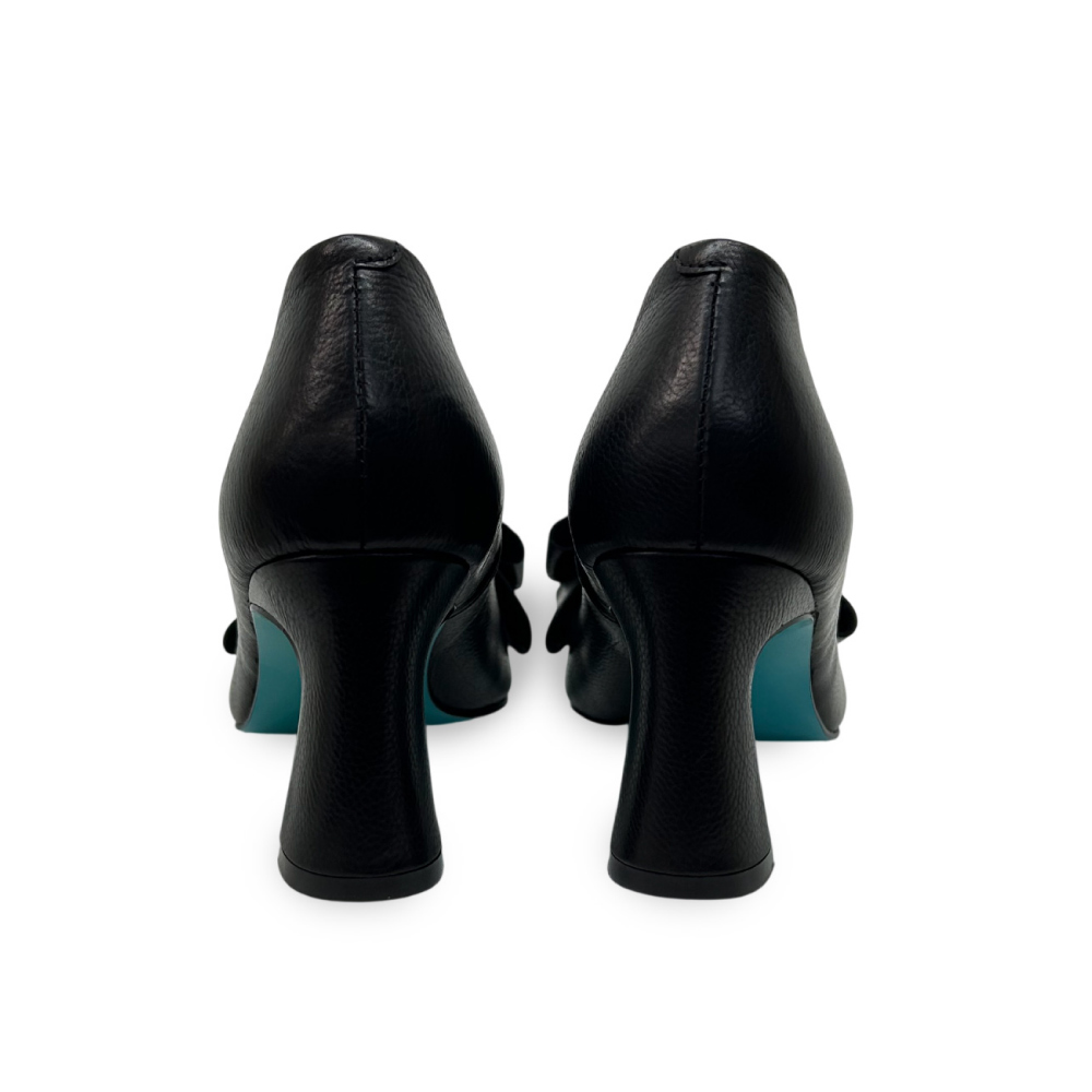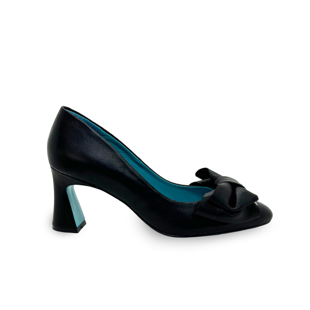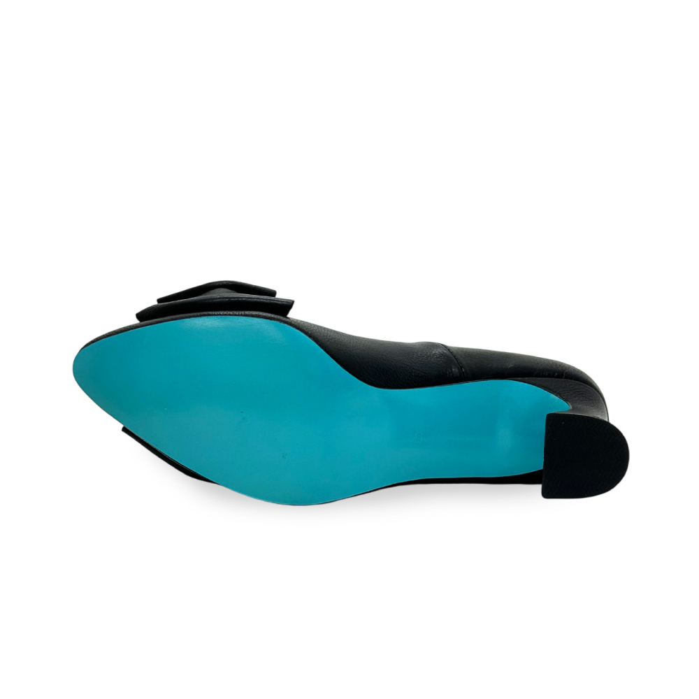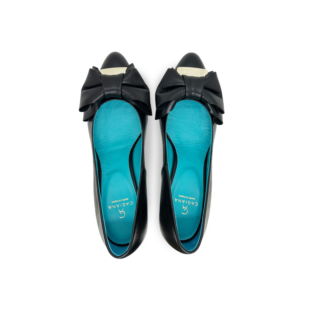 しなやかなカーフレザーが足を包み込み、内側に配したターコイズブルーが、歩くたびにさりげなく覗く。それは、内に秘めた感性と美意識の象徴。フロントには、柔らかなリボンモチーフを立体的に配し、甘さを抑えたバランスで、大人の女性の足元に洗練された気品を演出します。