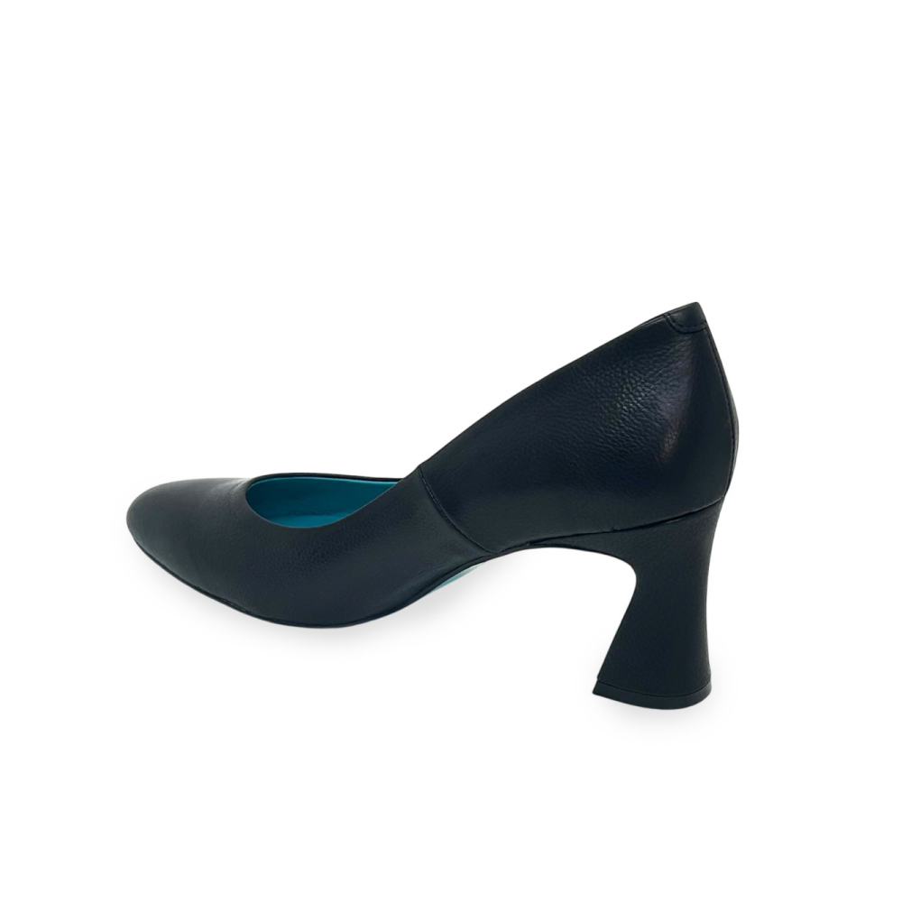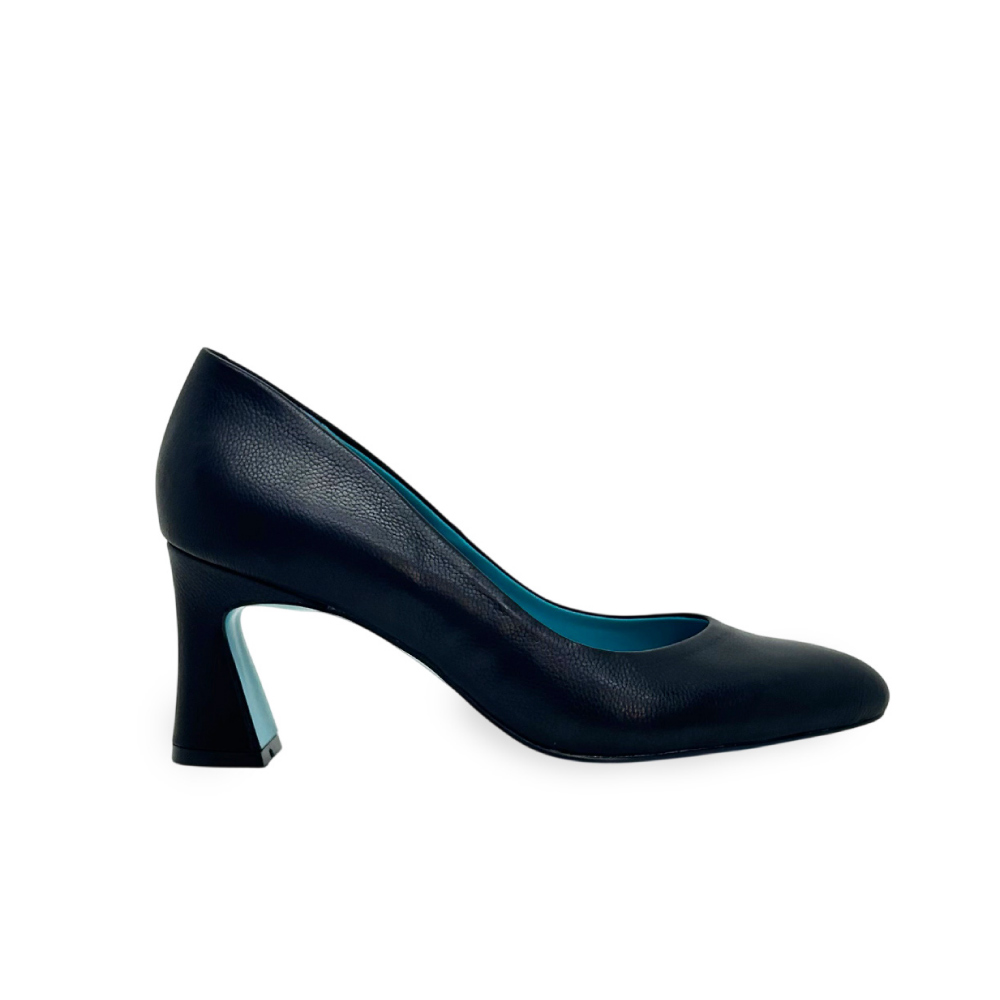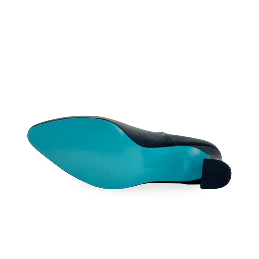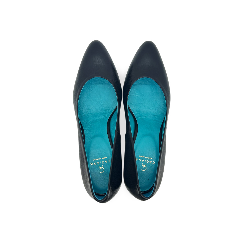 研ぎ澄まされたフォルムと、無駄のない表情。しなやかなカーフレザーの質感と、足を美しく見せるラインそのものを主役にした一足です。内側に配したターコイズブルーは静かなアクセント。装飾に頼らず、大人の女性の足元に洗練された佇まいと気品を添えます。