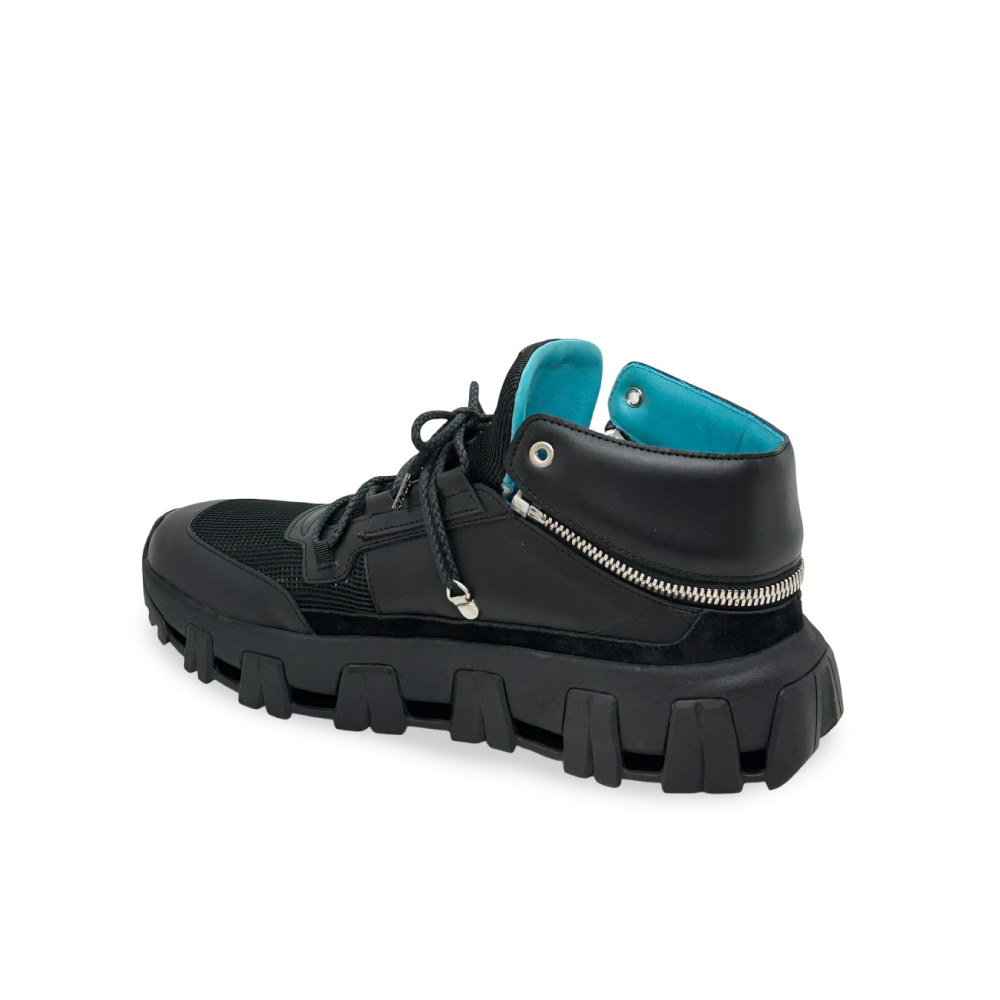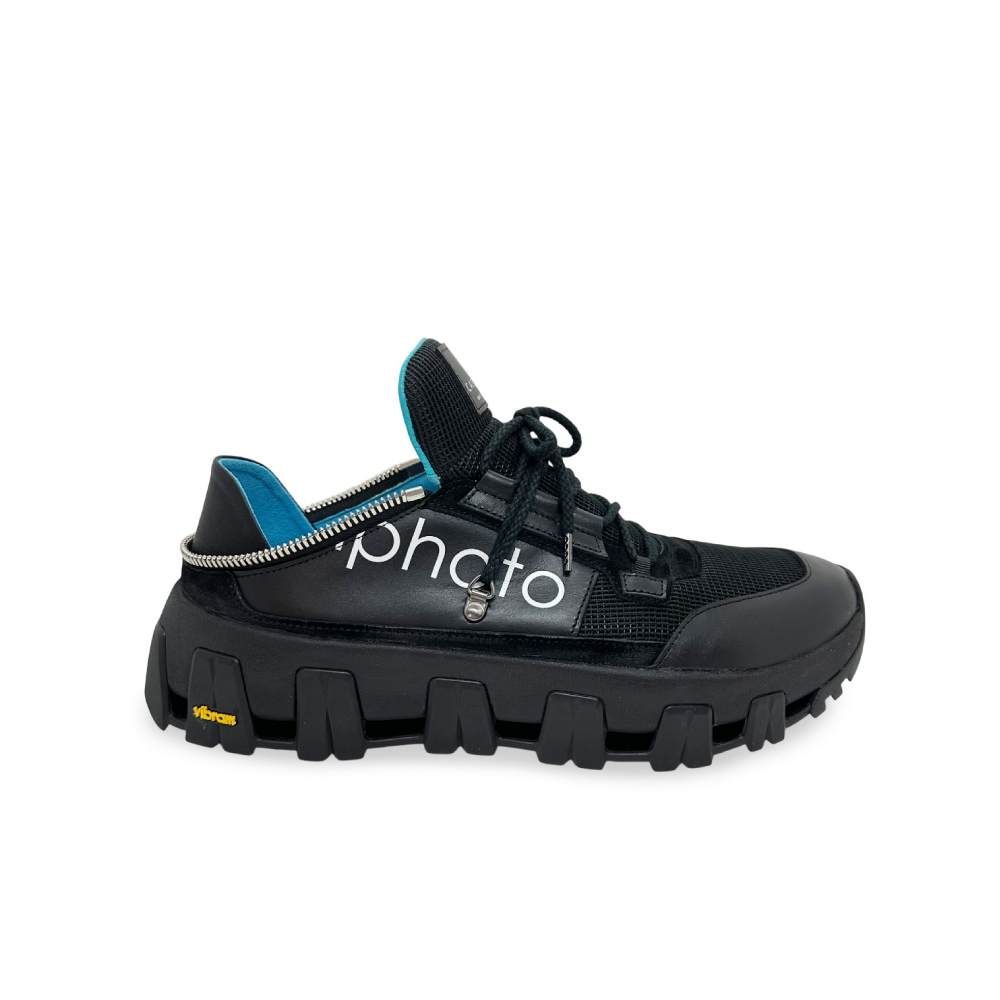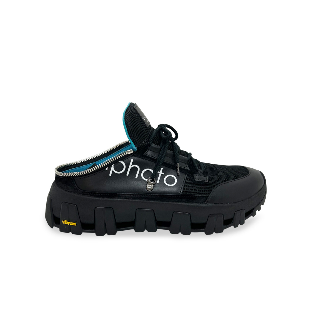建築写真家・田岡信樹氏の審美眼と共鳴し、光を支配するために生まれた漆黒の静寂。 異素材が織りなす黒の階調に、秘められたターコイズブルーが知的なコントラストを描き出します。 現場の振る舞いを優美に変えるコンバーチブルな踵と、ロゴが完成するデタッチャブルな造形美。 これは単なるスニーカーではなく、空間を切り取るプロフェッショナルのための「歩く機材」です。