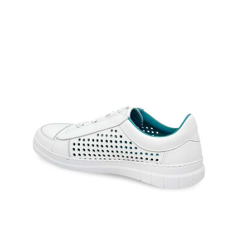 パンチングという技法が、堅牢な革に「呼吸」という新たな命を吹き込みました。無数の孔(あな)が描く緻密なリズムと、結ぶ手間を脱ぎ捨てたゴムシューレースの機能美。スリッポンのごとく軽やかな着脱は、多忙な日常に「究極の余白」という贅沢をもたらします。